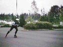 By the next day, we were ready and able to take our training to the great outdoors. The parking lot had some nicely sloped and sufficiently long hills to allow us to try all of the hill drills. This including Granny and Gorilla skating up hills; tuck, train ride, slalom, and big air down hills. Dave Rhoades aced the coasting competition with enviable form!